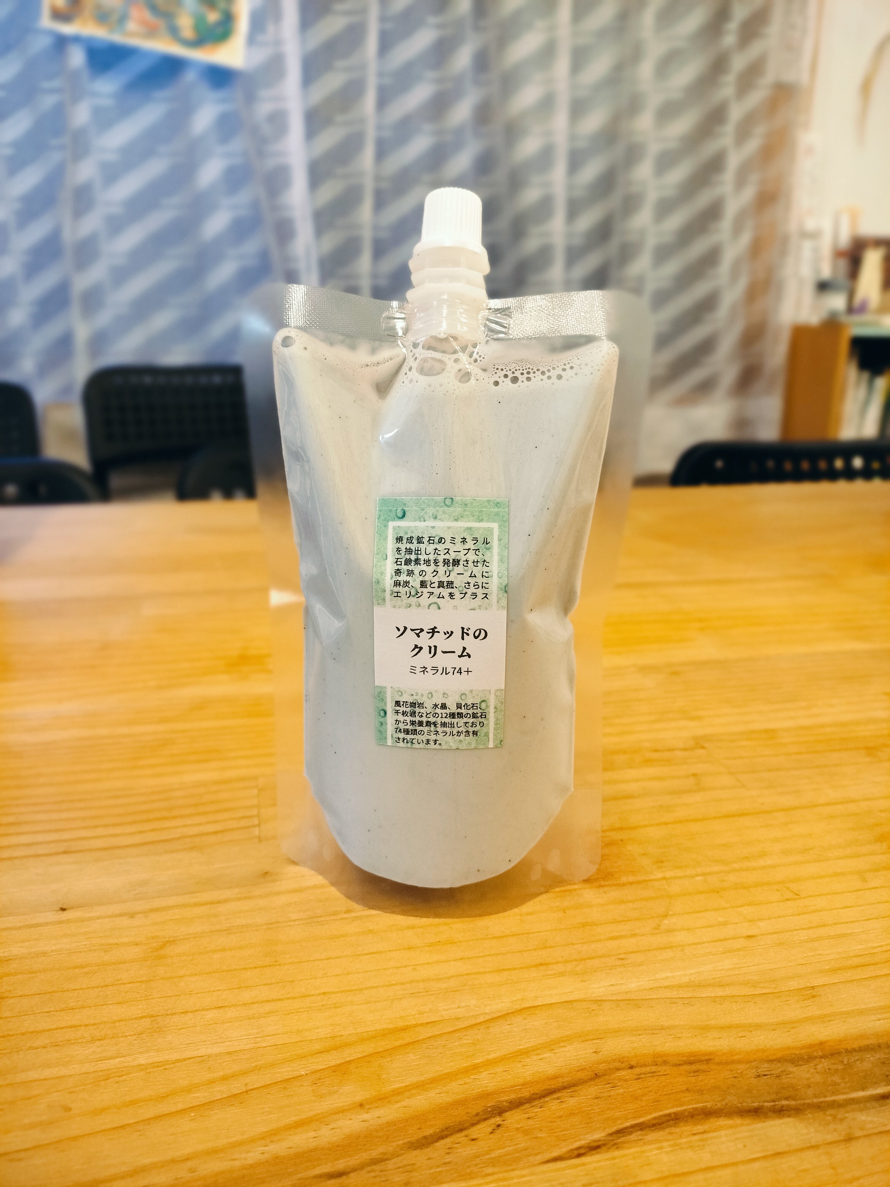 焼成鉱石のミネラルを抽出したスープで、石鹸素地を発酵させた奇跡のクリームに、更に麻炭、藍と真菰、エリジアムを配合して植物のエネルギーもプラスしています。